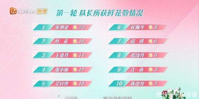 最后5个内投队长是宋妍霏、侯佩岑、陈德容、房琪、江一燕。这结果可太有戏剧性了,宋妍霏以23朵花成了人气王,那叫一个风光。再看陈德容,才2朵花,这对比简直就是一个天上一个地下,就像那芝麻开花——节节高和老太太过年——一年不如一年的区别。